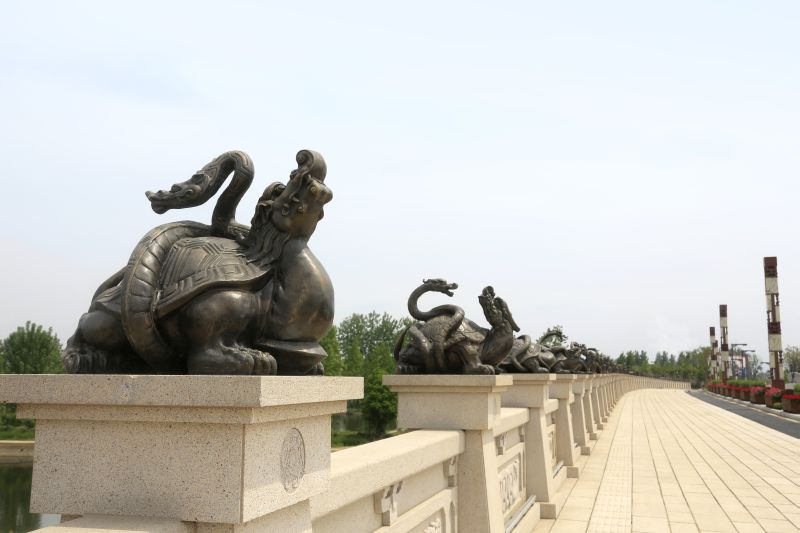 設(shè)計(jì)師撫著絲綢之路上玄武橋頭一座星盤的石雕介紹,興元新區(qū)的道路、橋梁、建筑、陳設(shè),每一個(gè)地方都有漢文化的印記,青龍、白虎、朱雀、玄武四橋共同對(duì)應(yīng)著東西南北的四個(gè)方位;每座橋的橋欄板上雋刻的青銅神獸,更是能將古代文化元素印刻在游人腦際。玄武橋西南是緊鄰的牽牛星橋和織女星橋,中間有隧道連接,游客在休憩、觀賞景色的時(shí)候,遙想牛郎織女的愛情故事,對(duì)自己的美好愛情就會(huì)更加珍惜。