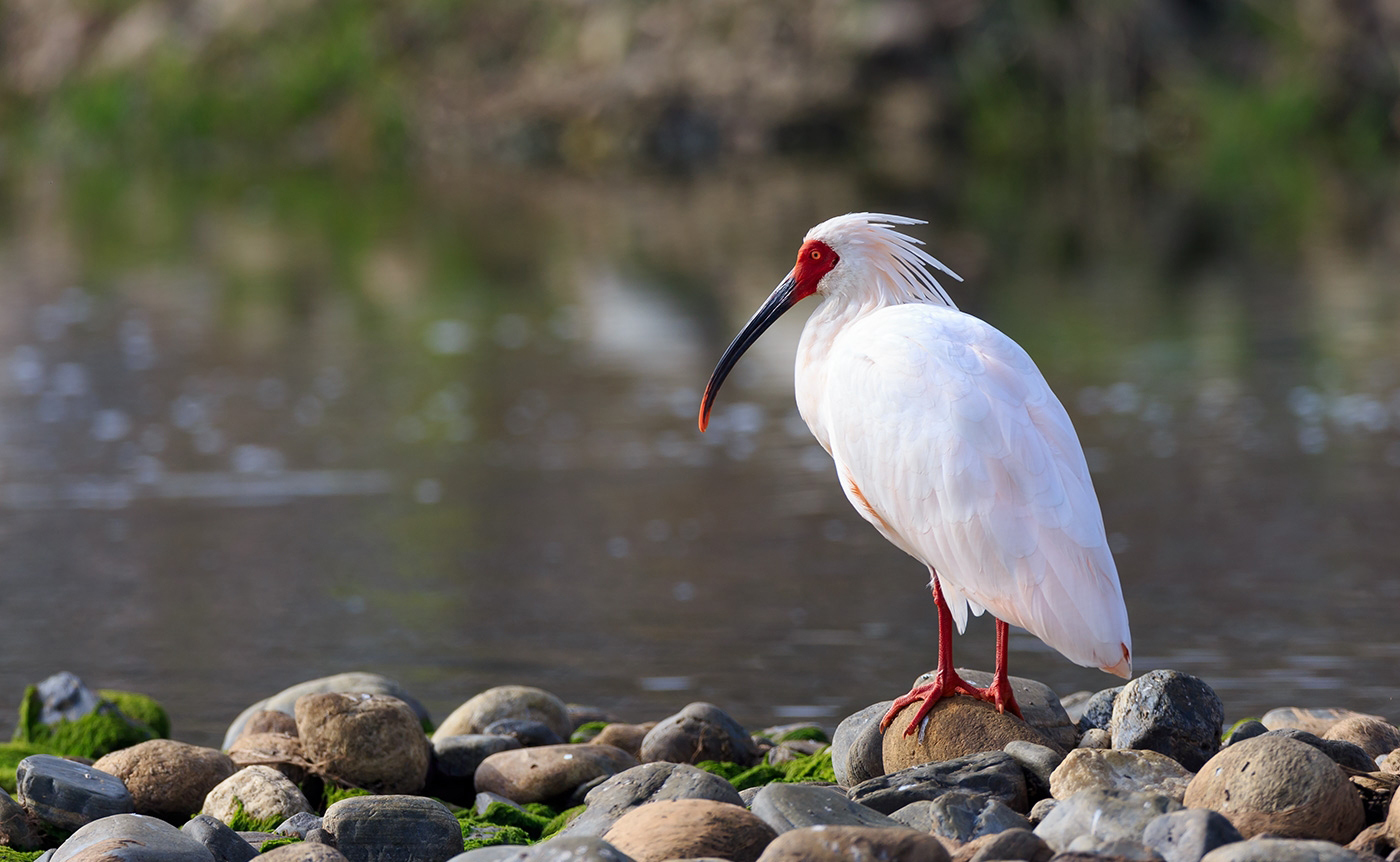 朱鹮(學(xué)名:Nipponia nippon)古稱朱鷺、紅朱鷺,朱鹮系東亞特有種。中等體型,體羽白色,后枕部有長(zhǎng)的柳葉形羽冠,額至面頰部皮膚裸露,呈鮮紅色;繁殖期時(shí)用喙不斷啄取從頸部肌肉中分泌的灰色素,涂抹到頭部、頸部、上背和兩翅羽毛上,使其變成灰黑色。棲息于海拔1200~1400米的疏林地帶,在附近的溪流、沼澤及稻田內(nèi)涉水,漫步覓食小魚、蟹、蛙、螺等水生動(dòng)物,兼食昆蟲;在高大的樹木上休息及夜宿;留鳥,秋、冬季成小群向低山及平原作小范圍游蕩;4~5月開始筑巢,每年繁殖一窩,每窩產(chǎn)卵2~4枚,由雙親孵化及育雛,孵化期約30天,40天離巢,性成熟為3歲,壽命最長(zhǎng)的記錄為37年。