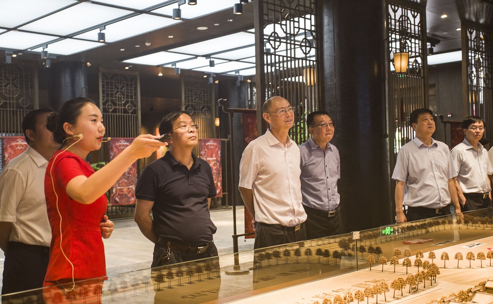 李俊波一行來到興漢新區(qū)規(guī)劃展覽館,聽取了項目的簡單介紹,觀看了項目建設(shè)專題片。隨后深入漢苑、漢文化博覽園、張騫風(fēng)情街、漢人老家街等重點項目建設(shè)現(xiàn)場進行調(diào)研,乘車觀覽了項目區(qū)的橋梁、水系及道路建設(shè)情況,他們一邊走、一邊問,就感興趣的地方與陪同參觀人員親切交流。面對眼前體量巨大的項目,李俊波連連稱贊大手筆,而漢中自古被譽為“漢家發(fā)祥地,中華聚寶盆”,漢文化底蘊深厚,他表示在漢中發(fā)展興漢新區(qū)是順勢而為,并對項目的未來發(fā)展充滿了希望。