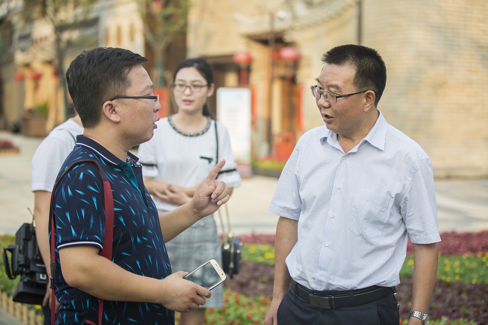 在整個采訪過程中,媒體記者邊走邊看,對興漢新區(qū)項目進行詳細詢問,集團公司副董事長楊俊杰針對記者感興趣的產城融合、招商引資、合作模式等問題,接受了媒體記者的獨家專訪。隨著采訪深入,諸多記者對興漢新區(qū)項目及其全域旅游發(fā)展路徑有了更為深刻的認識。興漢新區(qū)堅持大項目帶動大發(fā)展的同時積極推進“旅游+”的全域旅游發(fā)展思路,高起點規(guī)劃、高水平建設的一批漢文化旅游精品項目讓媒體記者嘖嘖稱贊,他們對興漢新區(qū)宏大的規(guī)模及日新月異的建設速度感到震驚,有記者表示興漢新區(qū)的各大建筑群落充分體現了漢文化元素,真正打響了世界漢文化品牌。