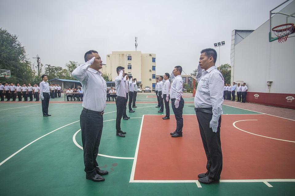 五支隊伍先后進行了隊列演練,評委們從儀容儀表、隊列動作規(guī)范程度以及領(lǐng)隊人員指揮能力三個方面進行打分。最終,來自品鑒中心的隊伍脫穎而出,拔得頭籌。