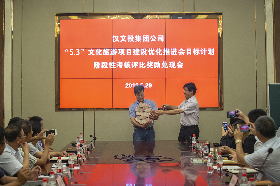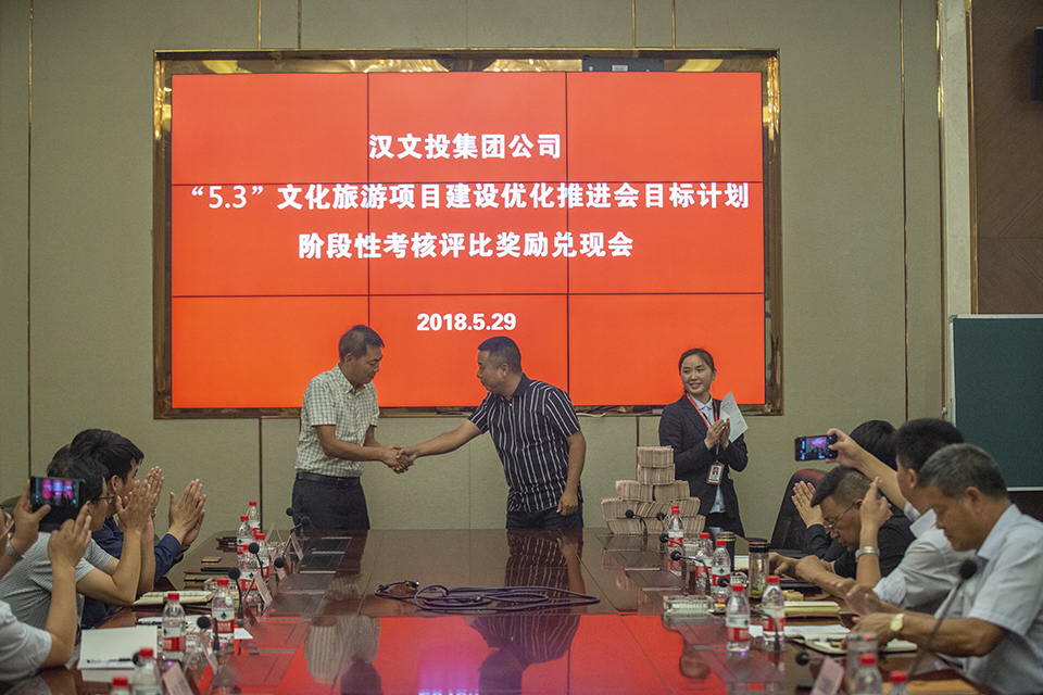 漢文投訊 5月29日下午,集團(tuán)公司召開(kāi)了文化旅游項(xiàng)目階段考核評(píng)比獎(jiǎng)勵(lì)兌現(xiàn)會(huì)。集團(tuán)公司副董事長(zhǎng)楊俊杰、總經(jīng)理佘洪濤出席會(huì)議。集團(tuán)重點(diǎn)工程協(xié)調(diào)指揮中心、項(xiàng)目包抓推進(jìn)組成員、工程相關(guān)部門(mén)負(fù)責(zé)人、文化旅游項(xiàng)目參建施工單位、監(jiān)理單位的主要負(fù)責(zé)人參加會(huì)議。會(huì)議由工程管理中心總經(jīng)理黃小康主持。