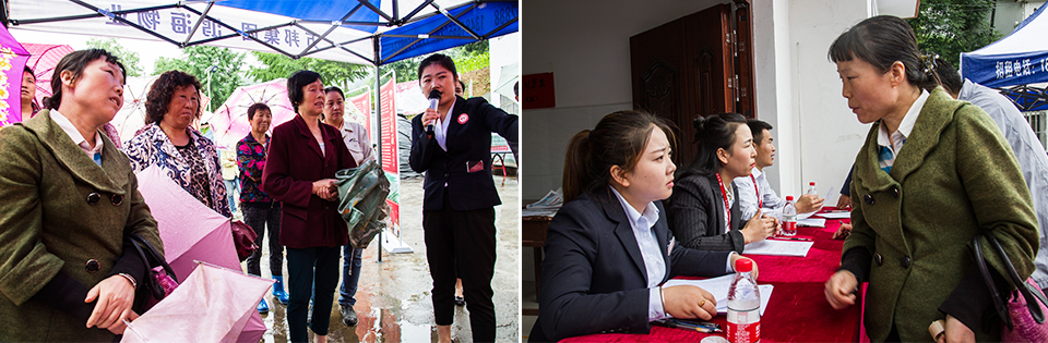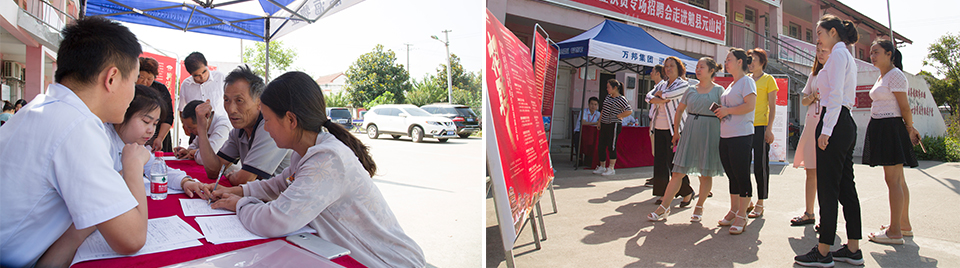 在村委會門前,漢文投集團招聘工作人員精心布置好招聘展臺,醒目的招聘橫幅懸掛在樓檐之下,招聘企業(yè)簡介及招聘崗位表醒目地列于招聘展臺兩側(cè)。在縣、鎮(zhèn)及村委會干部的積極配合下,即使面對在北梁村的下雨天氣、元山村的高溫酷暑,都絲毫沒有影響到眾多村民期望通過自身勞動而改變貧困現(xiàn)狀的滿腔熱情。他們早早趕到村委會招聘會現(xiàn)場,在工作人員的親切引導下,了解企業(yè)崗位需求,并按照招聘流程,一步步達到雙方滿意的初步應(yīng)聘結(jié)果。