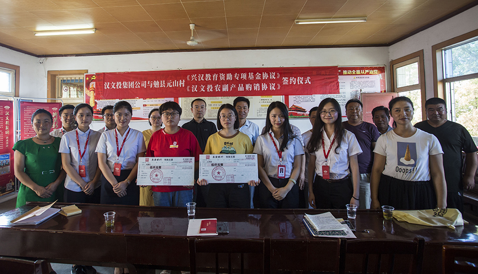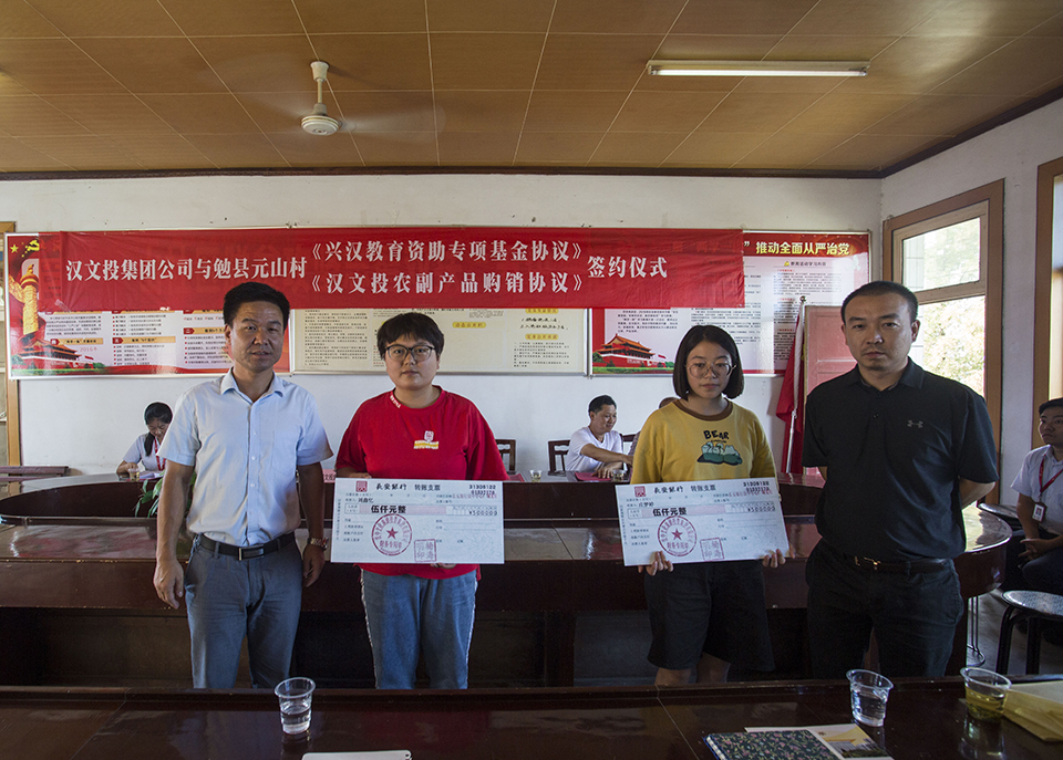 漢文投訊 為結對幫扶村脫貧攻堅再添新動力。8月16日,集團公司分別與洋縣槐樹關鎮(zhèn)北梁村、勉縣定軍山鎮(zhèn)定軍山社區(qū)(原元山村)簽訂了《興漢教育資助專項資金協(xié)議》《漢文投農副產(chǎn)品購銷協(xié)議》及《苗木花卉購銷協(xié)議》,資金總額達70萬元。集團公司品牌傳播部總監(jiān)趙飛代表公司及扶貧小組為幫扶村6名今年剛考上大學的學生發(fā)放了助學金7.5萬元。