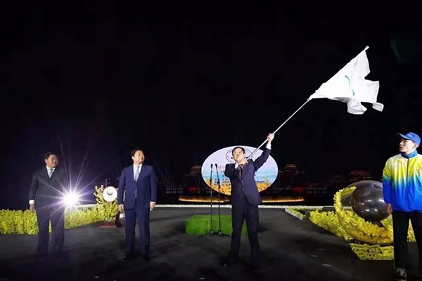 圖:漢中市委副書記、市長(zhǎng)方紅衛(wèi)向2020年主會(huì)場(chǎng)舉辦地城固縣縣長(zhǎng)胡新利移交會(huì)旗