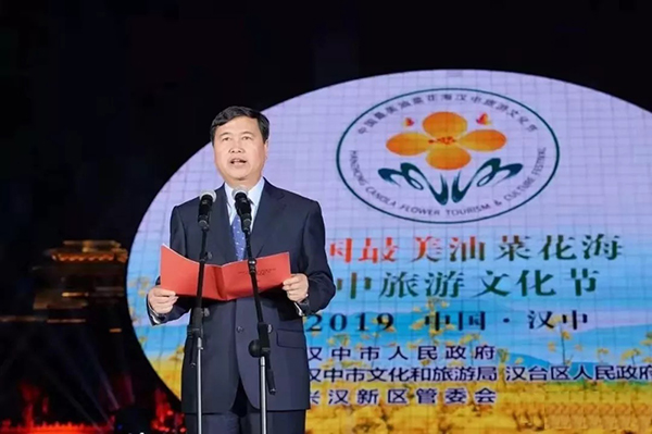 圖:漢中市委書記王建軍宣布2019中國(guó)最美油菜花海漢中旅游文化節(jié)啟動(dòng)