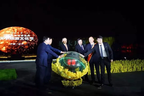 陜西省政協(xié)副主席陳強(qiáng),省文化和旅游廳副廳長(zhǎng)唐利如,漢中市委副書記、市長(zhǎng)方紅衛(wèi),漢臺(tái)區(qū)委書記曹宇,企業(yè)客商代表唐海濤,陜西省勞動(dòng)模范許大慶共同啟動(dòng)2019中國(guó)最美油菜花海漢中旅游文化節(jié)激光球。