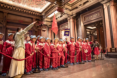 最后在研學(xué)導(dǎo)師的帶領(lǐng)下,孩子們參觀了興漢城市展覽館,無論是鎏金工藝的《金甌玉盆》,還是出自已經(jīng)耄耋之年的陸光正大師之手的東陽木雕《茶馬古道》,還是承載了古人淳樸宇宙觀的《漢水連天河》,都給孩子帶來了視覺上的震撼,而通過研學(xué)導(dǎo)師的講解,更讓他們了解了每件藝術(shù)品背后的文化歷史。