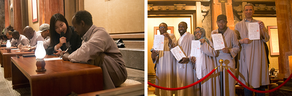 采訪團(tuán)來(lái)到新區(qū)核心漢文化建設(shè)項(xiàng)目興漢勝境,先后參觀了興漢城市展覽館及漢文化博物館。沿途不時(shí)駐足拍攝,向講解員詢問(wèn)相關(guān)歷史文化。在漢字廊體驗(yàn)漢風(fēng)抄書(shū)時(shí),采訪團(tuán)成員紛紛表示,漢字并不難寫(xiě),而且十分有趣。