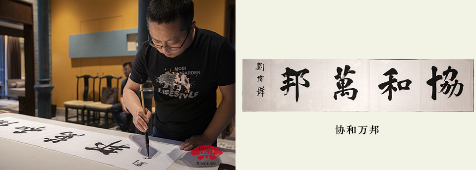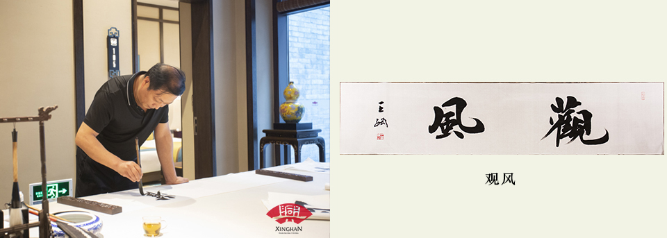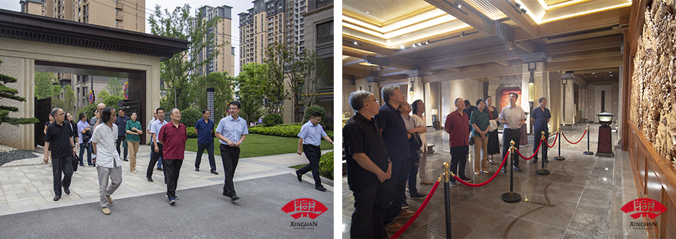 采風(fēng)過程中,書法名家們先后實(shí)地參觀了新區(qū)致力于民生優(yōu)先的回遷安置項(xiàng)目,充滿文化細(xì)節(jié)的公共基礎(chǔ)設(shè)施項(xiàng)目,以及新區(qū)漢文化集中展現(xiàn)的核心區(qū)域——興漢勝境。在興漢勝境,無論是宏大壯偉的建筑主題,還是精雕細(xì)琢的斗拱飛檐,亦或是精美絕倫的藝術(shù)陳設(shè),不僅令藝術(shù)家們贊不絕口,更激發(fā)了藝術(shù)家們的創(chuàng)作靈感。大家們紛紛潑墨揮毫,為興漢勝境量身定制了珍貴墨寶。