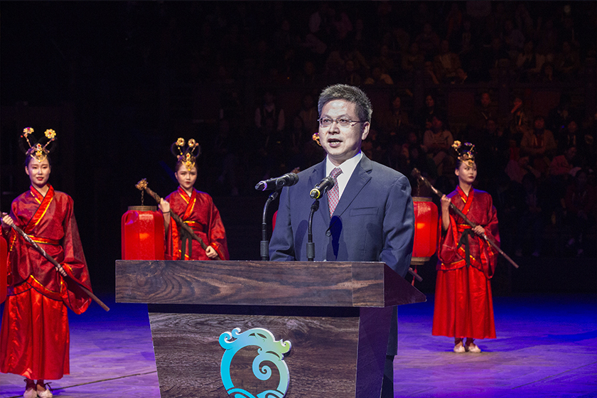 經(jīng)典誦讀、迎賓禮樂、先祖堂亮燈等儀式將活動(dòng)逐步引入高潮。開幕式在興漢勝境漢頌大會(huì)堂舉行,漢中市委副書記、市長(zhǎng)方紅衛(wèi)主持開幕式,漢中文化旅游投資集團(tuán)董事長(zhǎng)楊海明介紹了興漢勝境的整體情況,漢中市委書記王建軍、陜西省廣播電視局局長(zhǎng)王福豹分別致辭,陜西省副省長(zhǎng)方光華宣布2019首屆陜西漢文化旅游節(jié)啟動(dòng)。