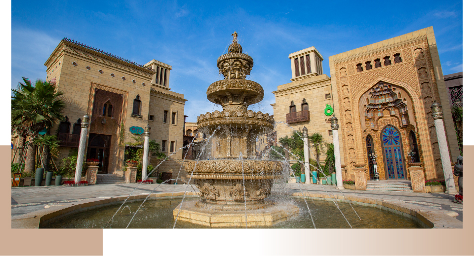 張騫是西漢時期著名的外交家、探險家,“絲綢之路”的開拓者。與漢人老家街毗鄰的張騫風情街,以張騫出使西域的線路為文化脈絡(luò)進行布局,由敦煌、龜茲、樓蘭、烏孫、于闐、大宛、大月氏七大地域版塊組成,南北兩端為特色主力店、餐飲、精品酒店;主線街區(qū)為地域民族手工藝品;沿湖為高端酒店及SPA私人會所等。大月氏的異國風情、大宛的日夜光影、樓蘭的浪漫神秘、敦煌的華美磅礴、烏孫的粗獷豪邁、龜茲的文化藝術(shù)、于滇的璀璨華麗,通過視覺、聽覺、嗅覺、味覺、觸覺五感讓游客在特色建筑、景觀小品、西域舞蹈、器皿、香料、飲食中體驗西域不同的人文風貌,來體味張騫萬里征程中的艱辛、毅力與忠誠。