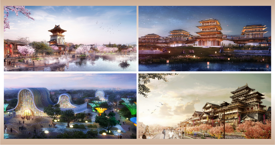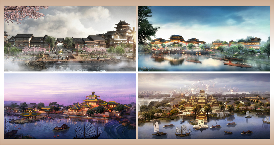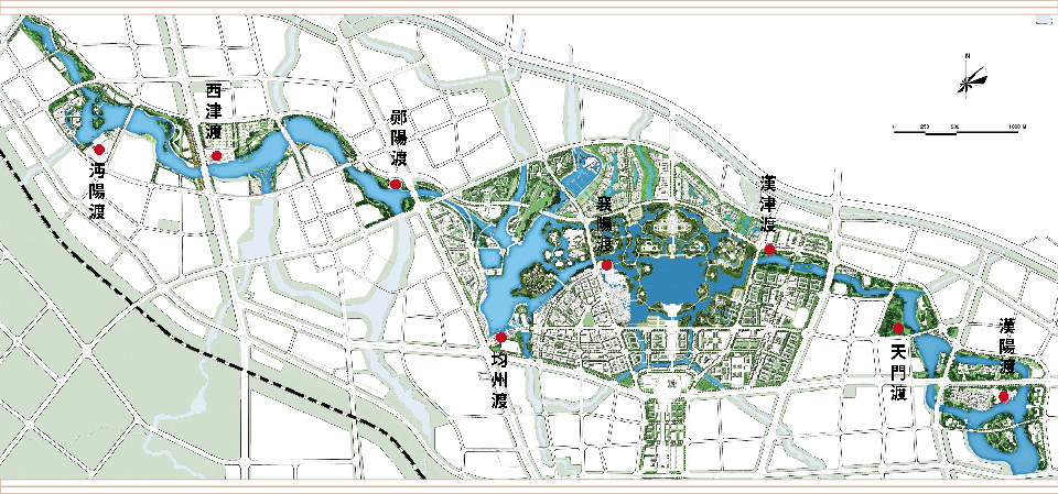 八大古意渡口以復(fù)興中國千年渡口文化為歷史使命,將漢文化精華與漢文化風(fēng)情植入社區(qū)和城市水系道路,體現(xiàn)一種活態(tài)的生活方式和文化記憶。興漢新區(qū)的八座古意渡口以漢水流域的八個(gè)古城古渡命名,展現(xiàn)漢源文明的歷史文化縮影;以漢源漢水的航運(yùn)貿(mào)易為動(dòng)態(tài)場(chǎng)景,再現(xiàn)漢水繁花的歷史時(shí)空記憶;以漢風(fēng)漢韻的特色產(chǎn)業(yè)為主題帶動(dòng),呈現(xiàn)古漢新貌的歷史意趣情境。每一個(gè)渡口由四部分組成,即文化街、文化廣場(chǎng)、文化會(huì)館、漢文化的渡口。它們都不再是港口的作用,而是作為“追溯漢文化源流”的文化驛站,是“漢水十里風(fēng)情畫卷”的重要節(jié)點(diǎn)。