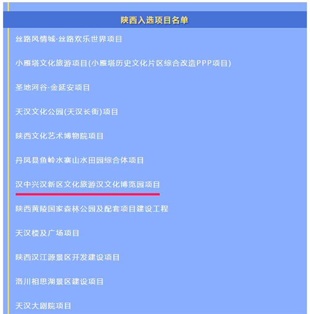 近日,文化和旅游部、國家開發(fā)銀行、中國進出口銀行、中國農(nóng)業(yè)發(fā)展銀行、中國工商銀行、中國銀行、中國光大銀行等7家單 位聯(lián)合公布了全國文化和旅游投融資項目遴選結(jié)果,旨在做好文化和旅游領(lǐng)域“六穩(wěn)”工作、落實“六保 ”任務(wù),持續(xù)拓寬融資渠道、激發(fā)投資活力、推動文化產(chǎn)業(yè)和旅游產(chǎn)業(yè)高質(zhì)量發(fā)展。陜西24個項目入選該榜單。