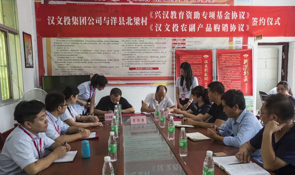 漢文投集團與結對幫扶村簽訂《漢文投農(nóng)副產(chǎn)品購銷協(xié)議》及《苗木花卉購銷協(xié)議》,資金總額達40萬元。