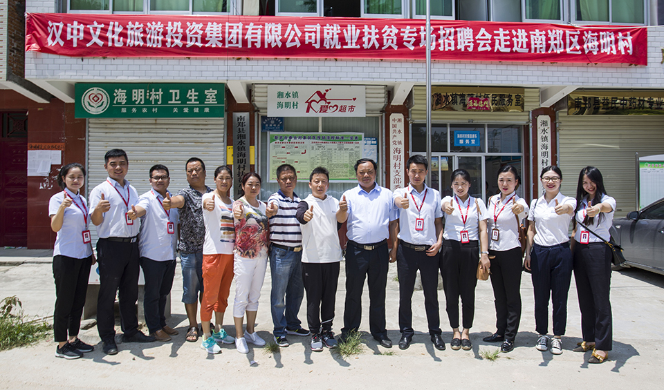 MORE漢文投訊 7月25日,漢中文化旅游投資集團(tuán)有限公司及其子公司漢中漢源文化產(chǎn)業(yè)投資有限公司、漢中興中物業(yè)服務(wù)有限公司,本著就業(yè)一人,脫貧一戶的原則,走進(jìn)南鄭區(qū)湘水鎮(zhèn)海明村開展就業(yè)扶貧招聘會(huì),助力精準(zhǔn)脫貧,促進(jìn)當(dāng)?shù)厝罕娫缛彰撠氈赂弧?烈日炎炎,高溫酷暑,卻絲毫沒有影響到海明村村民期望通過自身勞動(dòng)而改變貧困現(xiàn)狀的滿腔熱情,在得知集團(tuán)公司來村招聘時(shí),村民們紛紛前來應(yīng)聘。而在開始招聘前,集團(tuán)...