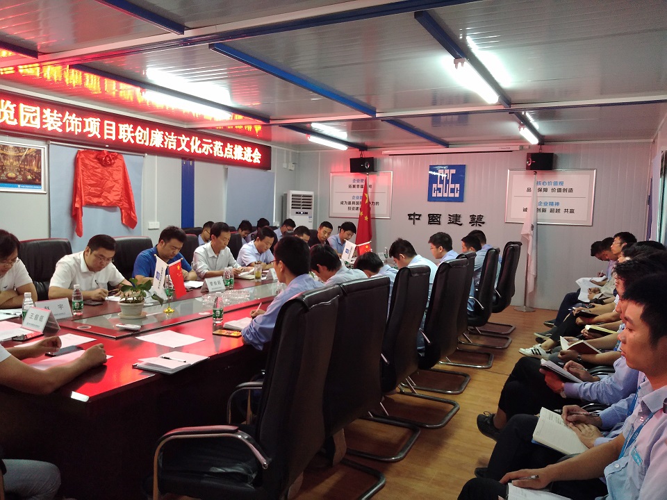 MORE漢文投訊 2017年9月14日,漢文化博覽園裝飾項(xiàng)目召開(kāi)聯(lián)創(chuàng)廉潔文化示范點(diǎn)推進(jìn)會(huì),漢文投集團(tuán)公司黨委副書(shū)記兼紀(jì)委書(shū)記劉少力、中建七局裝飾指揮長(zhǎng)菅俊超、江蘇無(wú)錫華誠(chéng)監(jiān)理有限公司總經(jīng)理助理兼工程部總經(jīng)理過(guò)君方出席會(huì)議。 會(huì)上宣讀了《聯(lián)創(chuàng)廉潔文化示范點(diǎn)實(shí)施方案》,簽署了《項(xiàng)目聯(lián)創(chuàng)廉潔文化示范點(diǎn)協(xié)議書(shū)》,參建單位做了集體廉潔承諾,為廉潔監(jiān)督員頒發(fā)聘書(shū)、為項(xiàng)目參建單位贈(zèng)送了廉潔教育圖書(shū)并為聯(lián)...