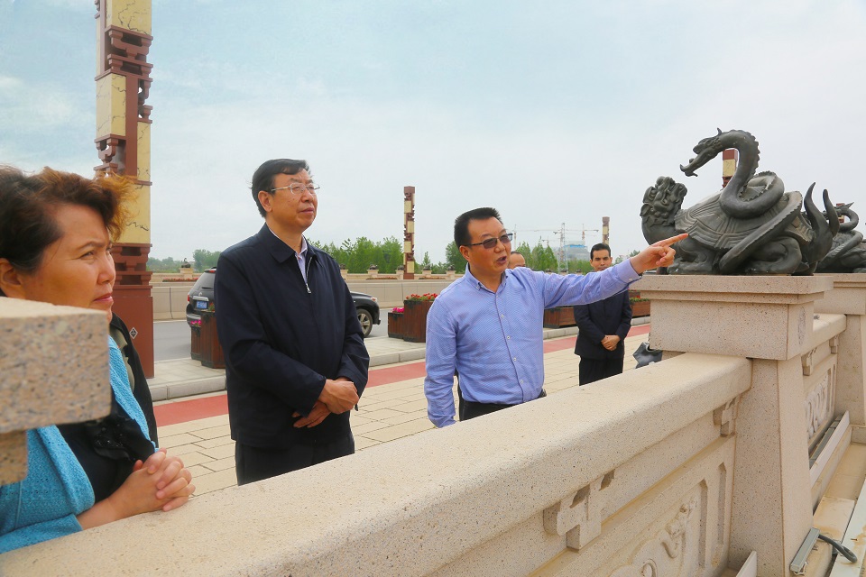 MORE漢文投訊 4月24日,陜西建工集團總經(jīng)理張義光調研興漢新區(qū)重點項目建設情況。集團公司副總經(jīng)理王偉陪同參觀考察。 張義光一行來到興漢新區(qū)規(guī)劃展覽館,聽取了項目規(guī)劃簡要匯報,觀看了項目建設專題片。隨后乘車觀覽了項目區(qū)的道路、橋梁建設情況,并深入漢人老家街、張騫風情街、漢文化博覽園等重點建設項目施工現(xiàn)場進行調研。陜建集團成員邊走邊看,他們稱贊玄武橋上精美的玄武雕塑及其中所蘊含的大漢元...