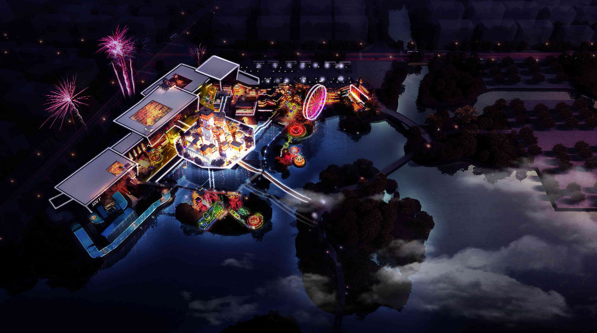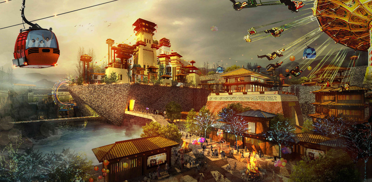 蜀道樂(lè)園是一座漢代奇幻建筑體驗(yàn)園,由皇天后土、漢水遺韻、仙林幻境、炎漢險(xiǎn)山、時(shí)光之船、璀璨之城六大主題區(qū)組成,分別表現(xiàn)信義、堅(jiān)毅、夢(mèng)想、勇氣、預(yù)演、智慧六種中華傳統(tǒng)精神。蜀道樂(lè)園總建筑面積約5.3萬(wàn)㎡。