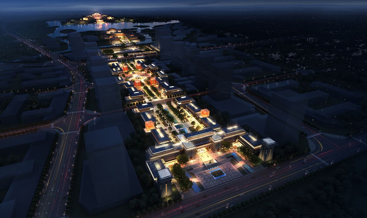 “一核”,即“中心兩湖”的核心地帶,也是整個“興漢漢文化國家旅游休閑度假區(qū)”的核心區(qū)域,定位為“世界漢文化標志,國家漢文化客廳,百姓漢文化樂園”,統(tǒng) 籌布局一宮、一苑、一府、兩街、三館、一園等“漢文化”建筑群,總建筑面積約為30萬平方米。