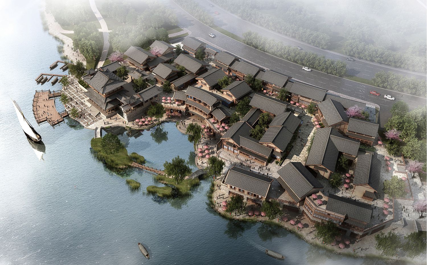 “一帶”是從東到西橫貫在區(qū)域中部的一條13公里長的河道,即“漢水文化東西河帶”。水面寬度從60米到300米,能夠通行特制的漢文化樓船及生態(tài)旅游水上巴士,沿線分段串聯(lián)8個“文化生態(tài)碼頭及休閑水岸商業(yè)區(qū)”,帶動沿線社區(qū)均衡發(fā)展。