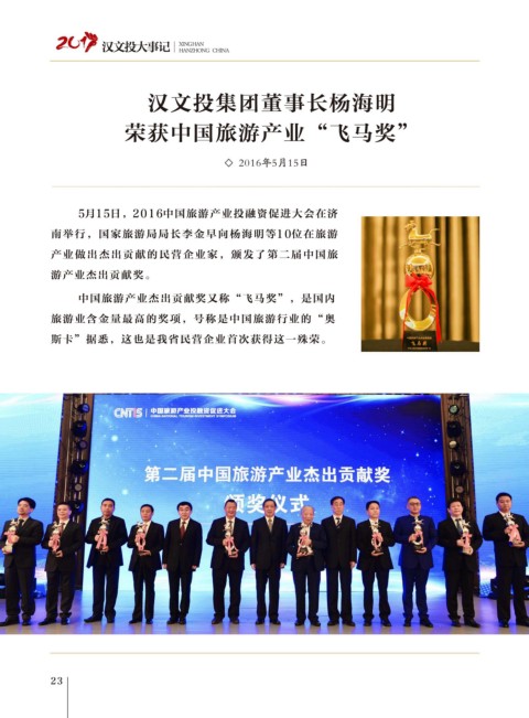 榮獲中國(guó)旅游產(chǎn)業(yè)“飛馬獎(jiǎng)”