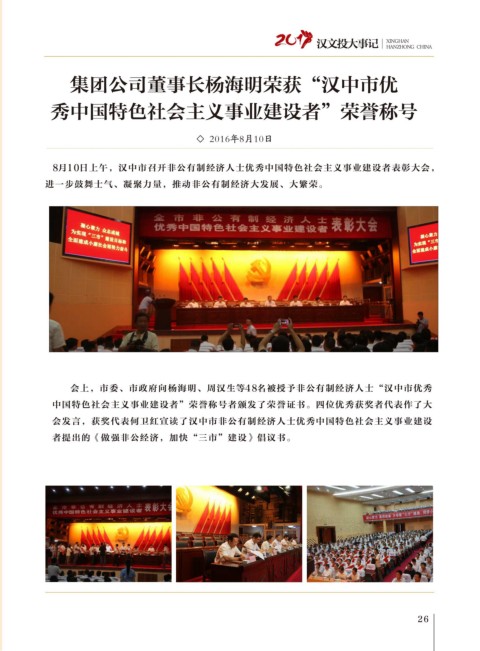 8月3日下午,中央黨校常務(wù)副校長何毅亭蒞臨漢中元漢新區(qū)建設(shè)項(xiàng)目視察調(diào)研。漢中 8月10日上午,漢中市召開非公有制經(jīng)濟(jì)人士優(yōu)秀中國特色社會主義事業(yè)建設(shè)者表彰大會,