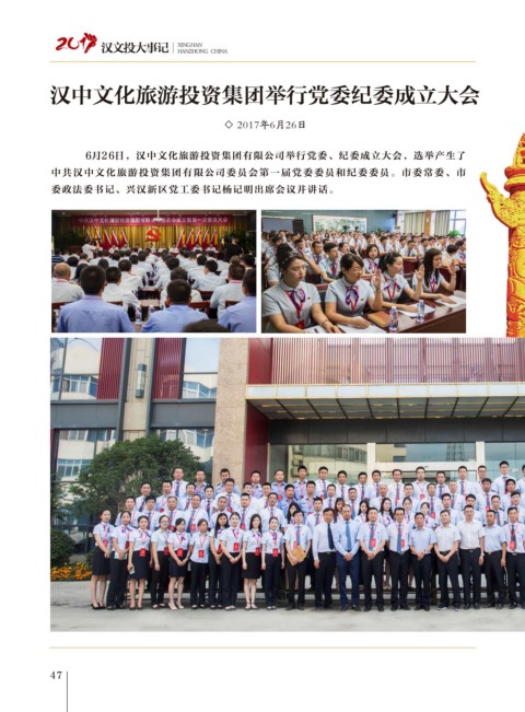 中共漢中文化旅游投資集團有限公司委員會第一屆黨委委員和紀委委員。市委常委、市 黨章有關(guān)規(guī)定。大會宣讀了漢臺區(qū)委組織部兩個批
